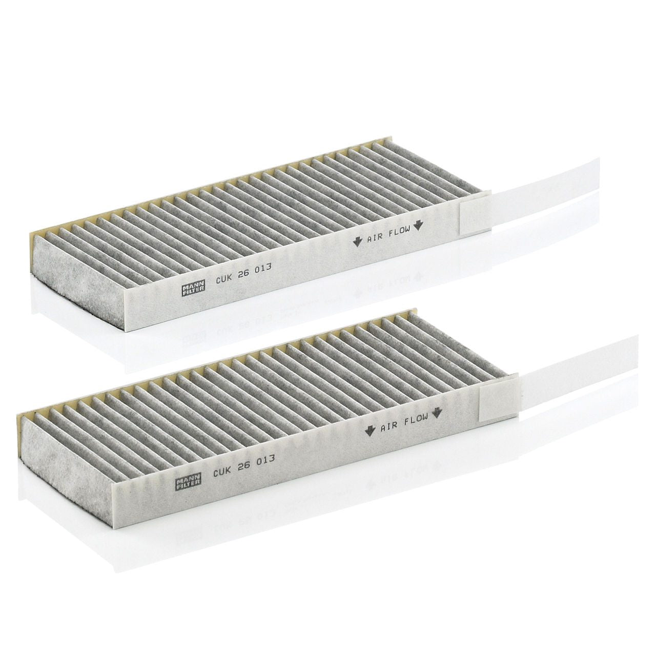 High-quality MANN-FILTER cabin filters with active carbon - nearly 100% protection from particles like pollen, diesel soot & tyre abrasion / Additional protection from harmful gases & unpleasant odour. The trated highly-effective activated carbon gives protection against harmful gases such as ozone, nitrogen oxide or sulphur dioxide and eliminates unpleasant odours during the entire service interval.