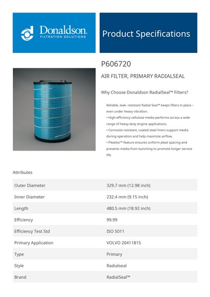 Why Choose Donaldson RadialSeal™ Filters?Reliable, leak- resistant Radial Seal™ keeps filters in place – even under heavy vibration.