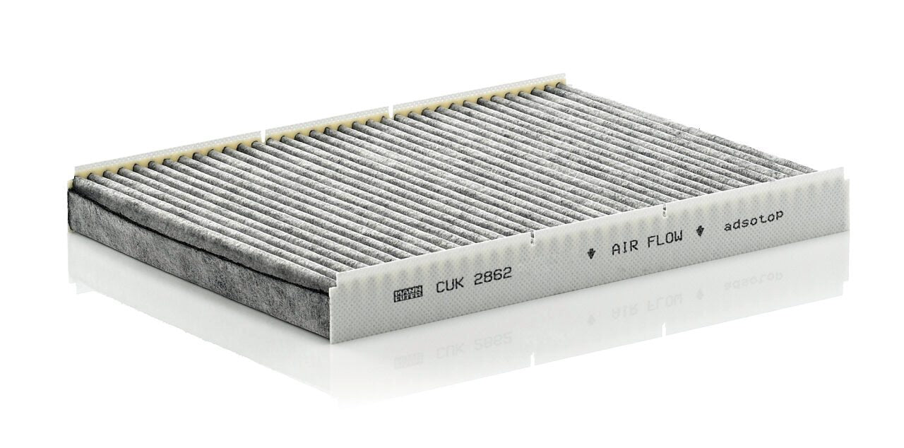 High-quality MANN-FILTER cabin filters with active carbon - nearly 100% protection from particles like pollen, diesel soot & tyre abrasion / Additional protection from harmful gases & unpleasant odour. The trated highly-effective activated carbon gives protection against harmful gases such as ozone, nitrogen oxide or sulphur dioxide and eliminates unpleasant odours during the entire service interval.