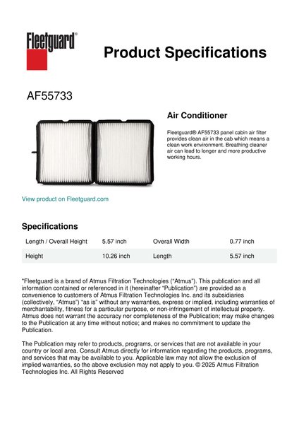 Fleetguard AF55733 Air Conditioner