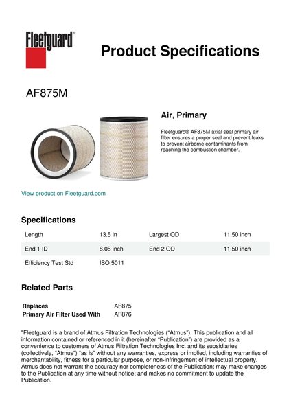 Genuine Fleetguard AF875M