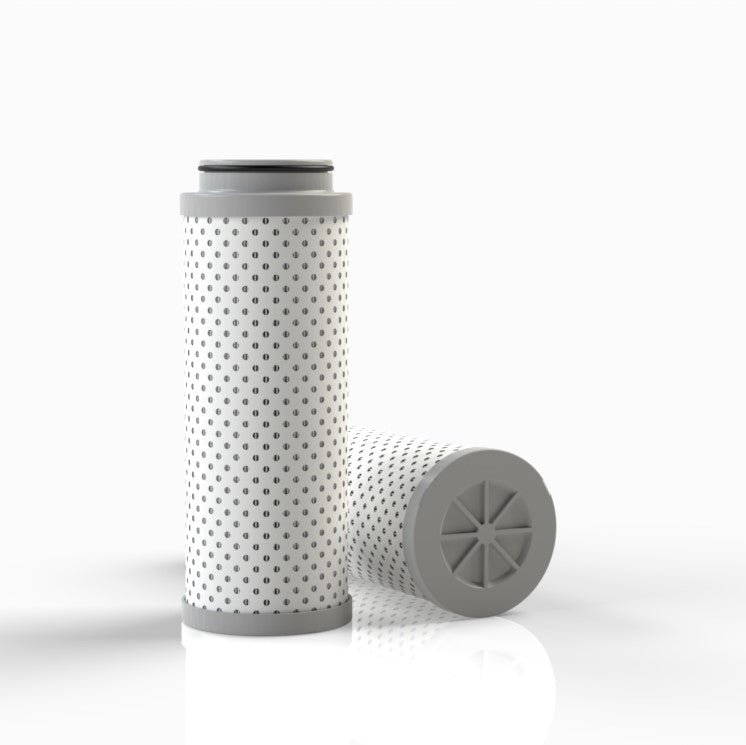 The efficiency of the element is shown using the Micron (µ) and Beta (β) ratings. The micron rating indicates the size of the particle being filtered and the beta rating the efficiency, calculated as 1/β.